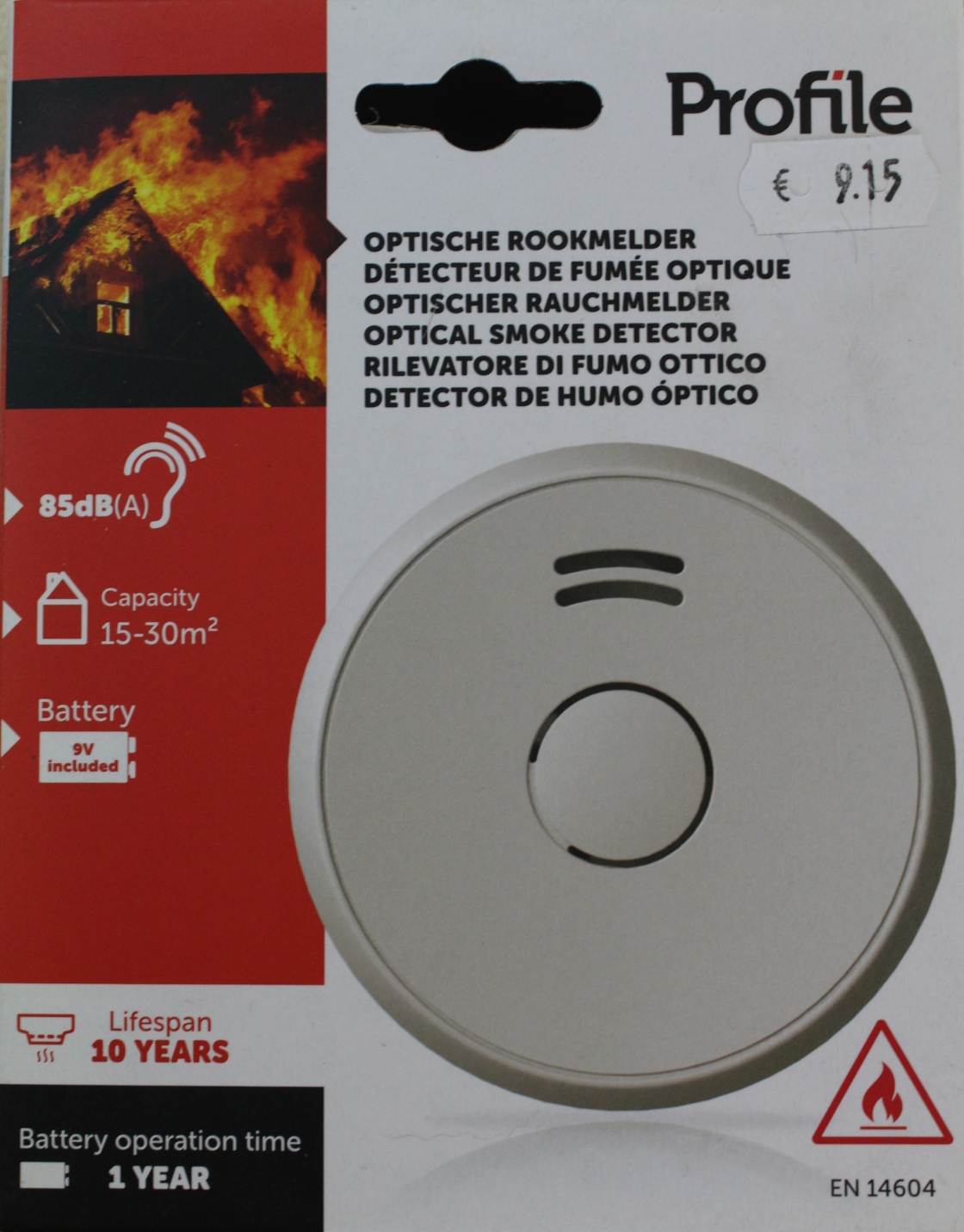 - 9v verwisselbare batterij (1 meegeleverd), te vervangen na minstens 1 jaar